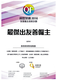 最傑出友善僱主 (香港環球教育集團) 資歷架構需要政府和業界共同努力,特別是業界彼此應加強合作,以「一人一小步,行業一大步」的信念擦亮資歷架構這個品牌。 資歷架構是為各行各業已就職多年的僱員提供「過往資歷認可」機制,以及持續進修的途徑,計劃的目的在於提升中小企業對資歷架構的認識,藉此鼓勵僱主以資歷架構作為考核僱員的標準。