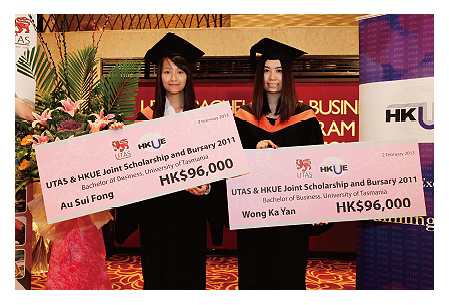 每年澳洲塔斯馬尼亞大學與HKUE會合頒全額學費助學金予商業學學士學位課程中,成績、出席率及整體表現最優秀的兩名學生。